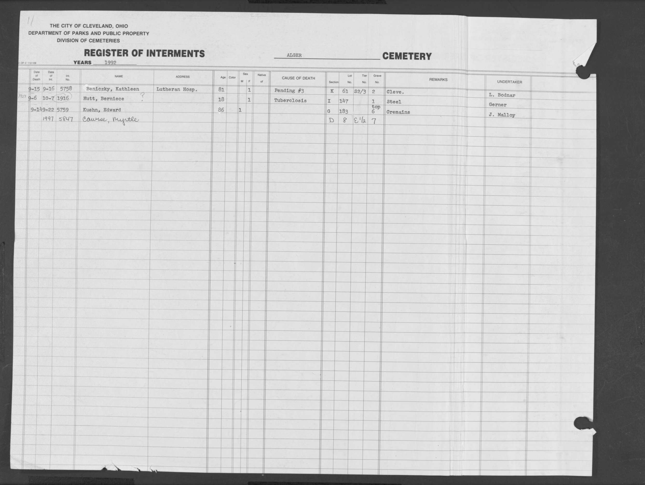 | Alger | 1 | 40 | Dec | 29 | 1916 | 799B | Alber, Jacob J | 41y | W | M | ||||