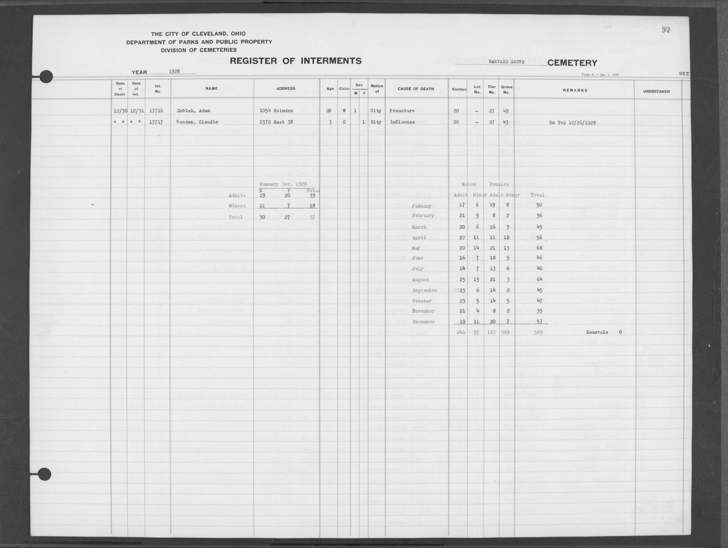 | Harvard Grove | 2 | 72 | Dec | 19 | 1917 | Dec | 21 | 1917 | 9717 | Zoubek, Marie | 33y | W | F | |