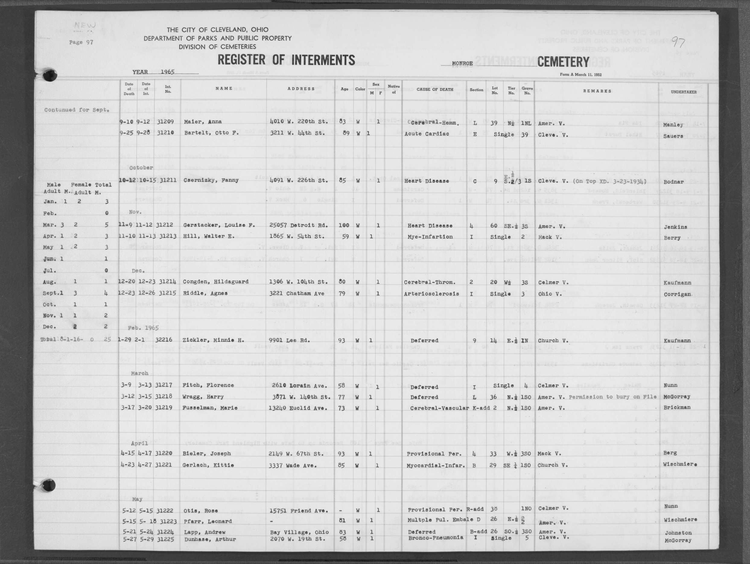 | Monroe Street | 4 | 105 | Jun | 7 | 1969 | Jun | 10 | 1969 | 31301 | Roth, Millie T | 72y | F | ||