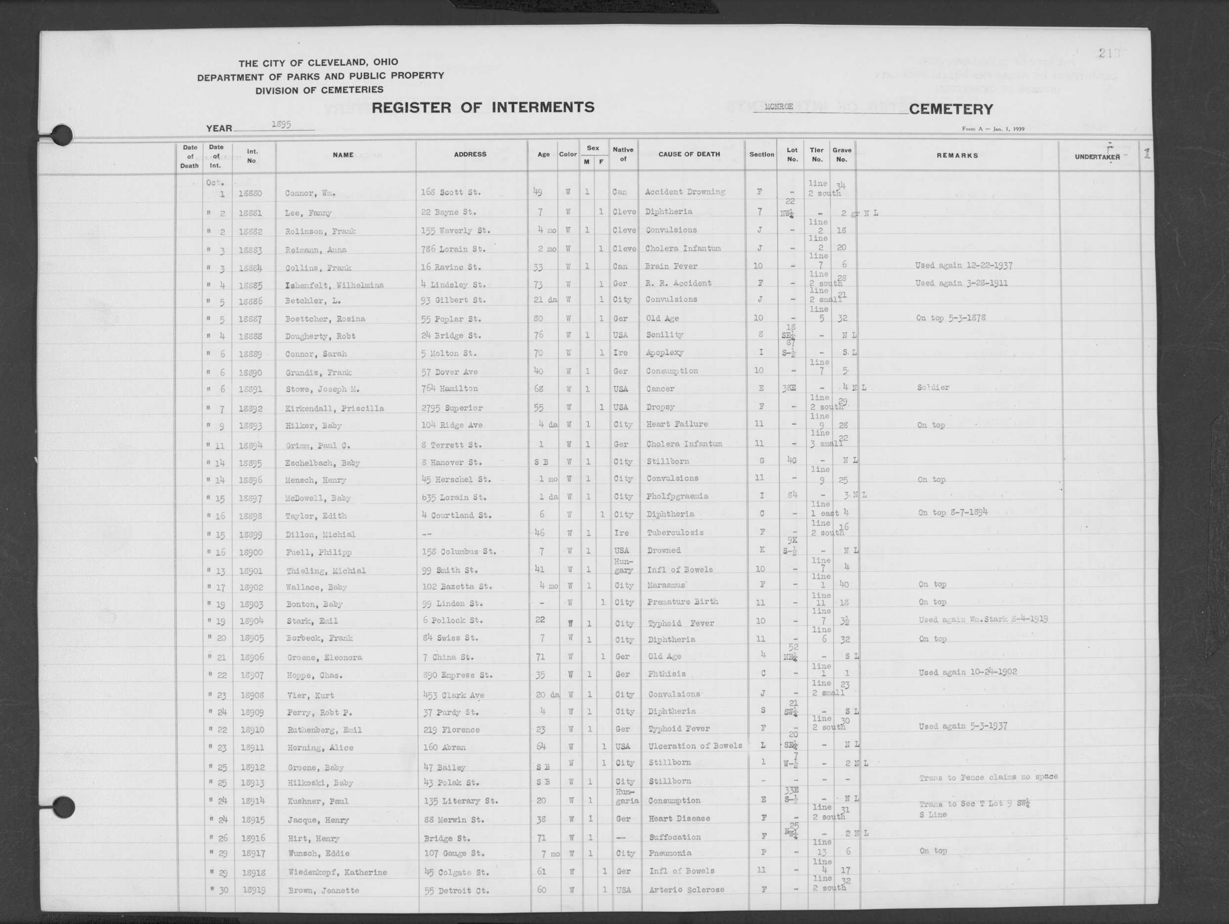 | Monroe Street | 2 | 177 | Oct | 18 | 1893 | 17624 | Shere, Wm | 28y | W | M | ||||