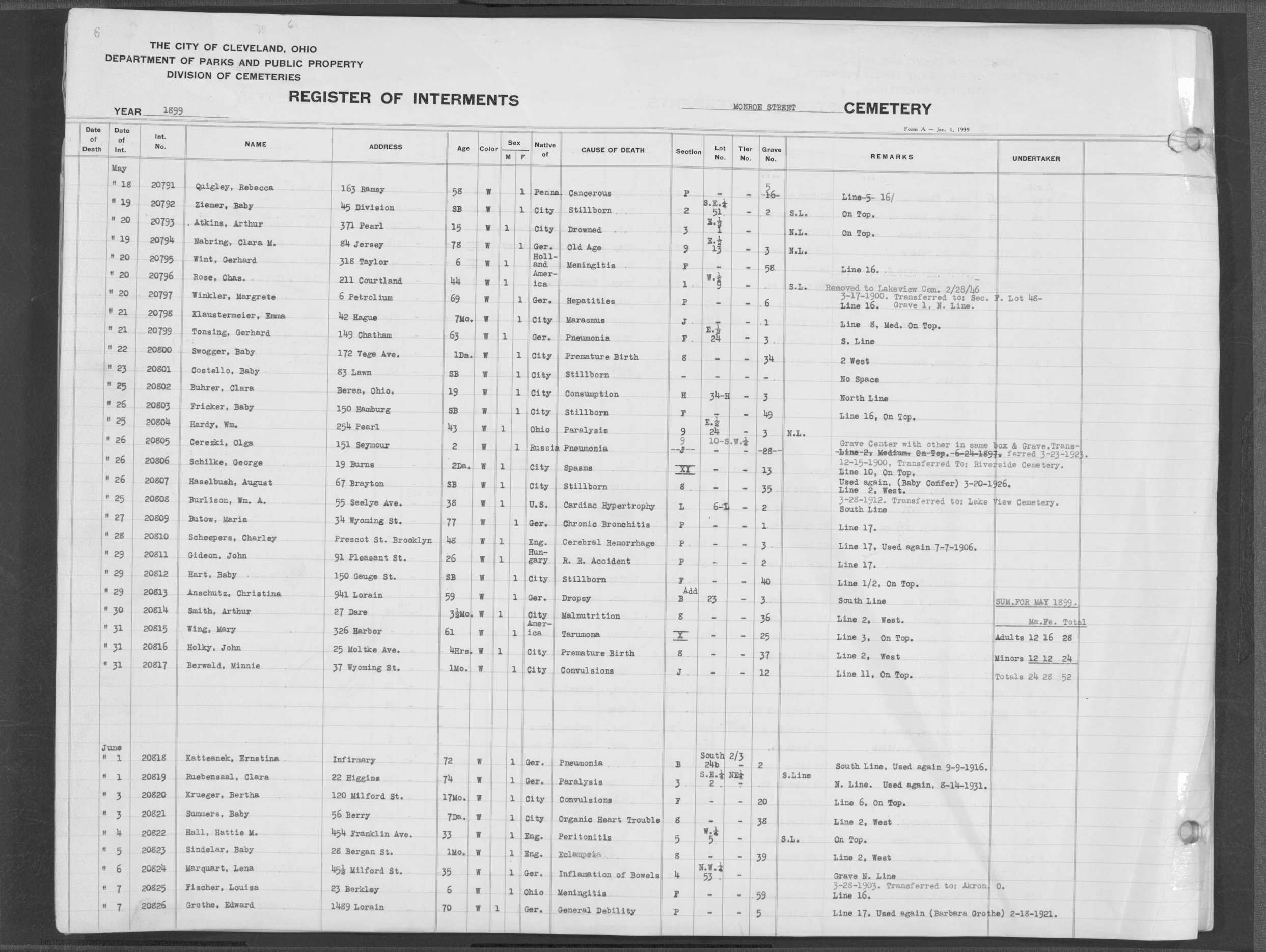 | Monroe Street | 2 | 251 | May | 26 | 1898 | 20237 | Swayer, | SB | W | M | ||||