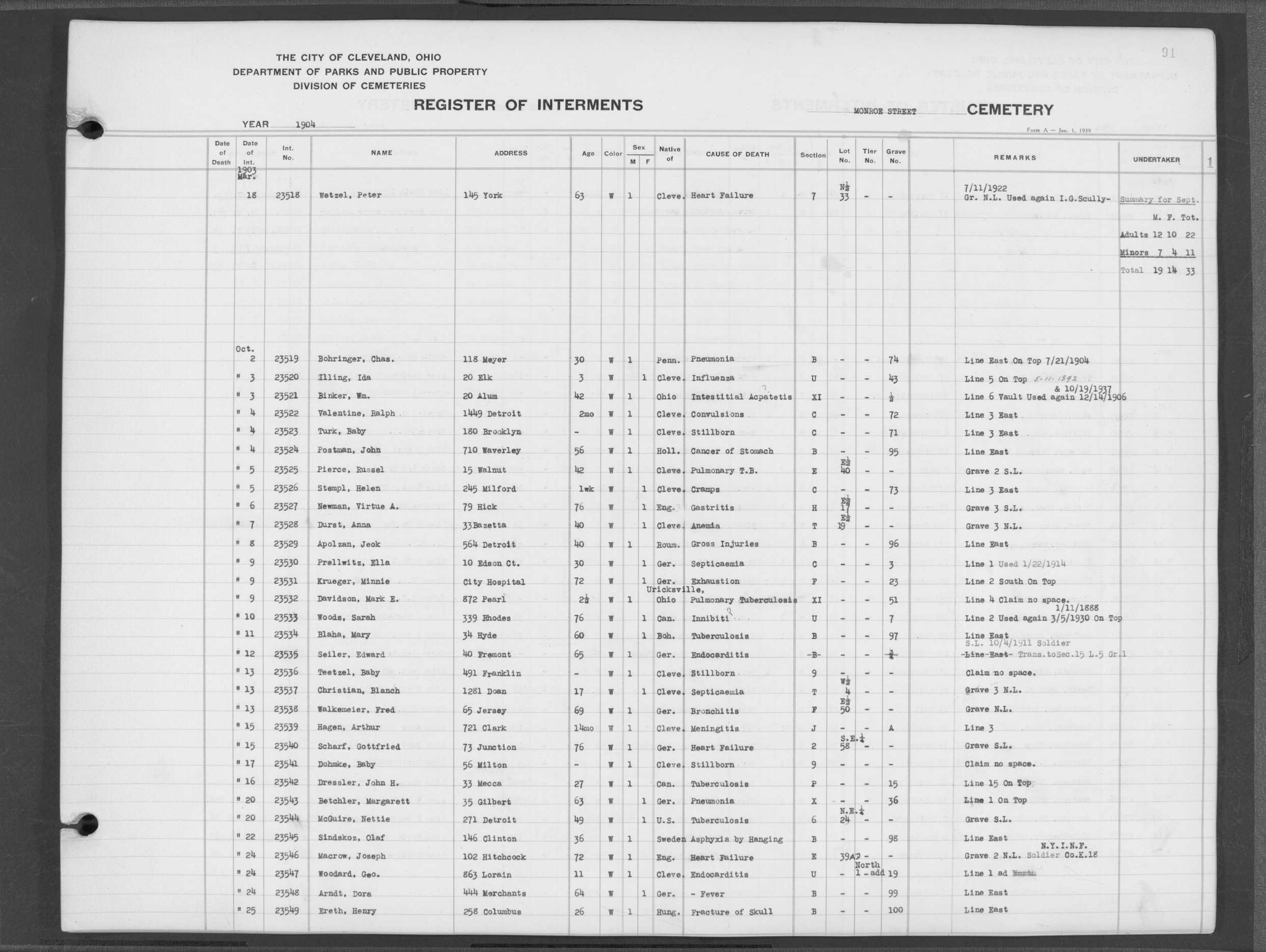 | Monroe Street | 3 | 90 | Sep | 22 | 1904 | 23507 | Shay, John | 57y | W | M | ||||