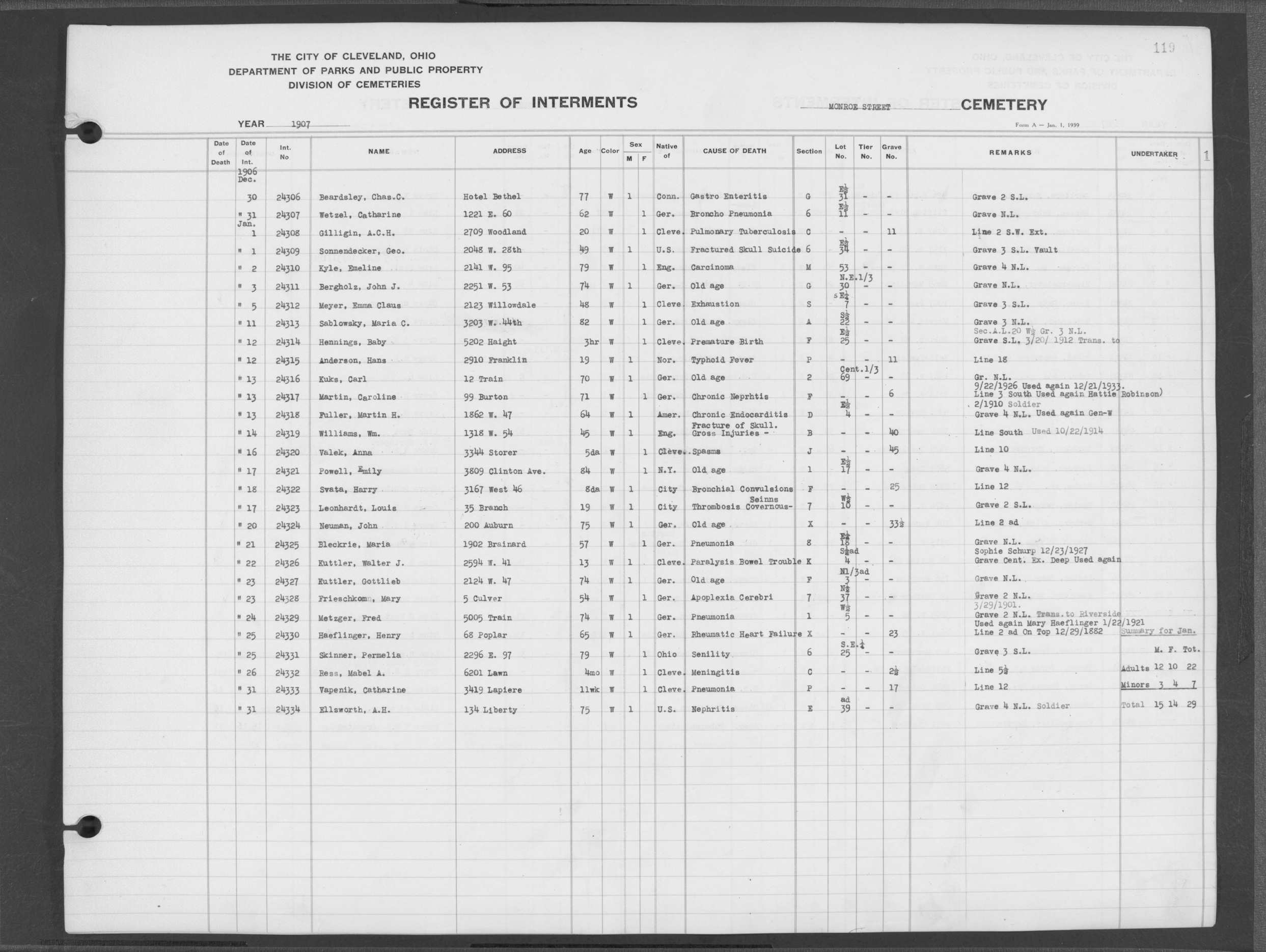 | Monroe Street | 3 | 121 | Mar | 22 | 1907 | 24386 | Swartwood, Elizabeth | 62y | W | F | ||||