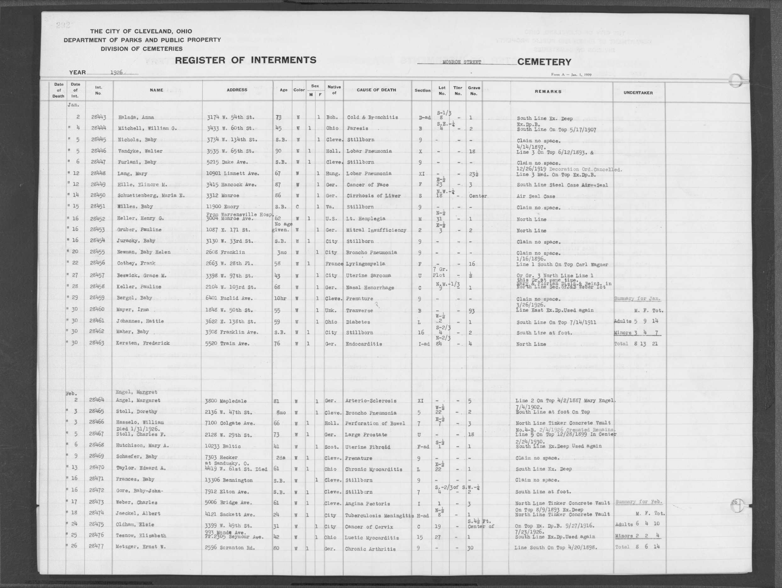 | Monroe Street | 3 | 302 | Dec | 7 | 1927 | 28746 | Svonava, | SB | W | M | ||||