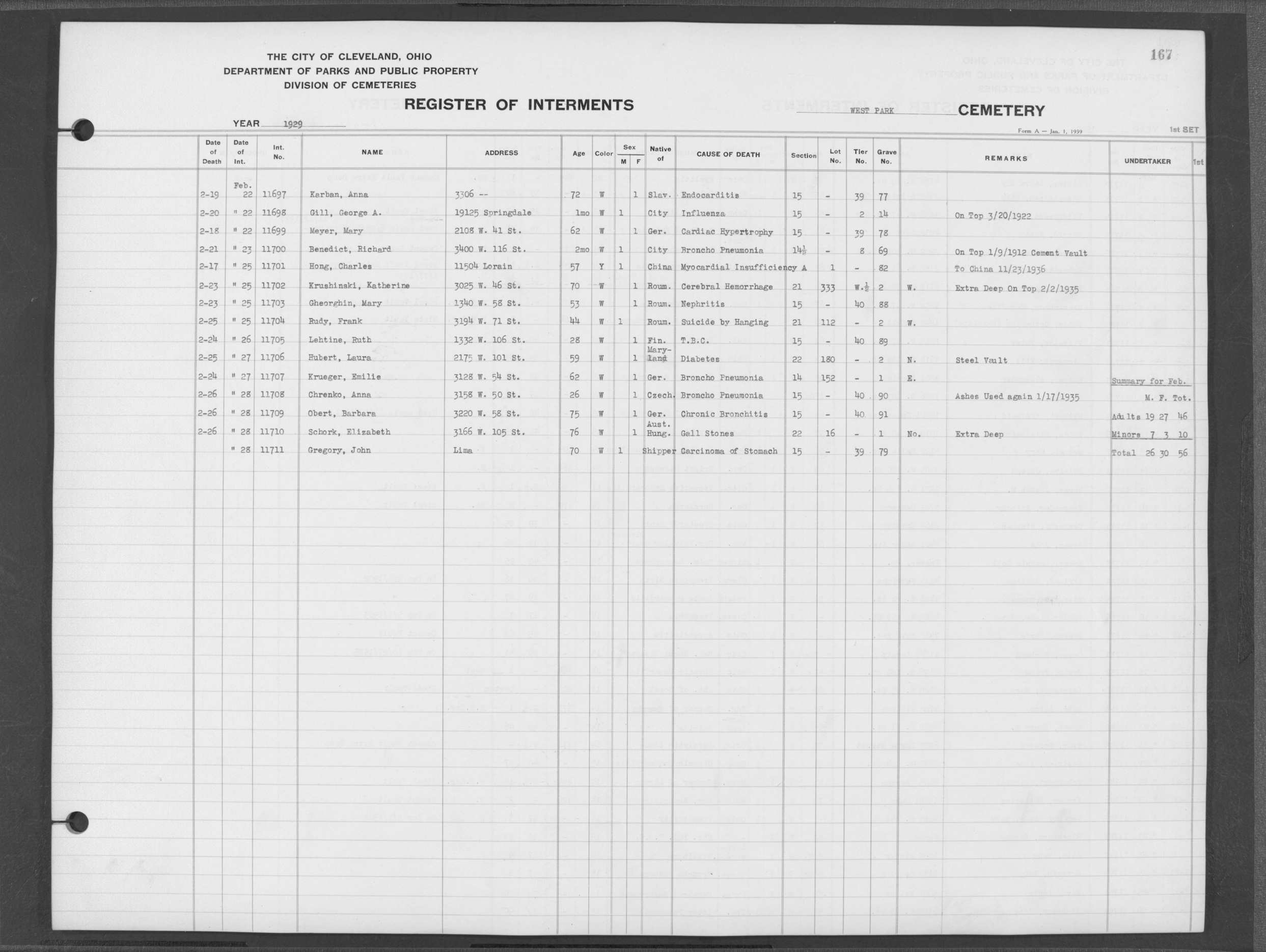 | West Park | 1 | 190 | Oct | 30 | 1919 | 6318 | Hegerling, William A | 59y | W | M | ||||