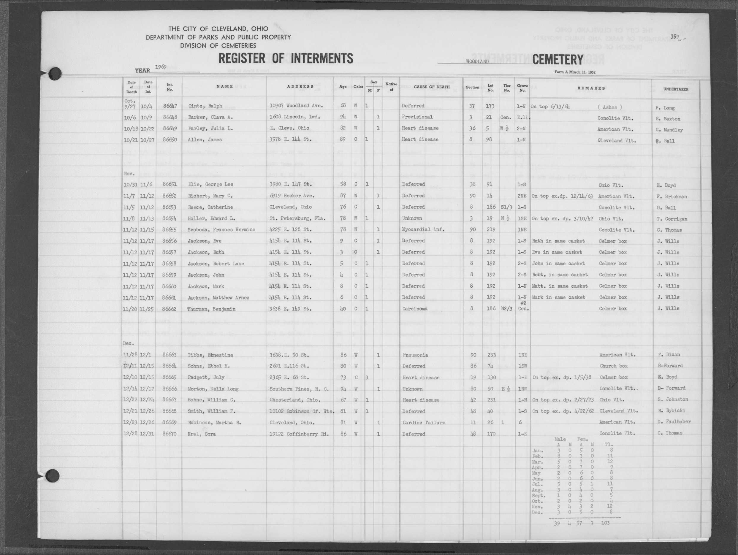 | Woodland | 9 | 189 | Aug | 3 | 1919 | Jul | 6 | 1919 | 69327 | Bluim, Charles | 72y | W | M | |