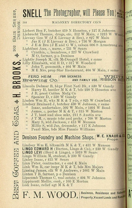 Lievsay, Lightfoot, Lightle, Lilly, Lincoln, Linden,