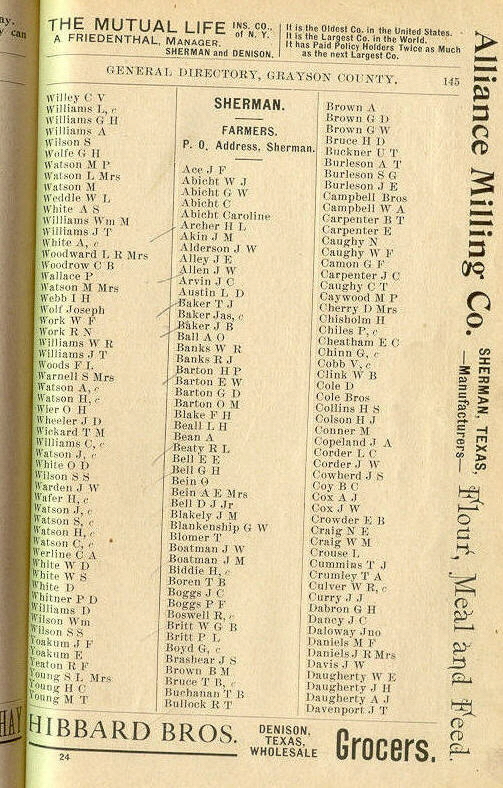 Burleson, Campbell, Carpenter, Caughy, Camon, Caywood, Cherry,