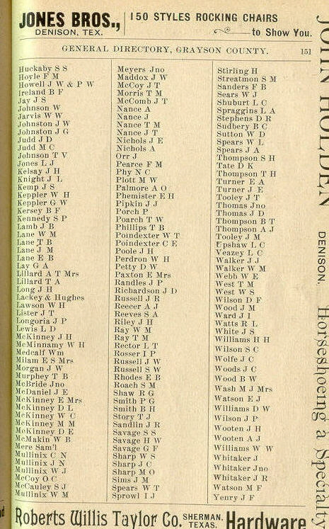 Shaw, Smith, Story, Sandlin, Savage, Sharp, Sims, Spears,