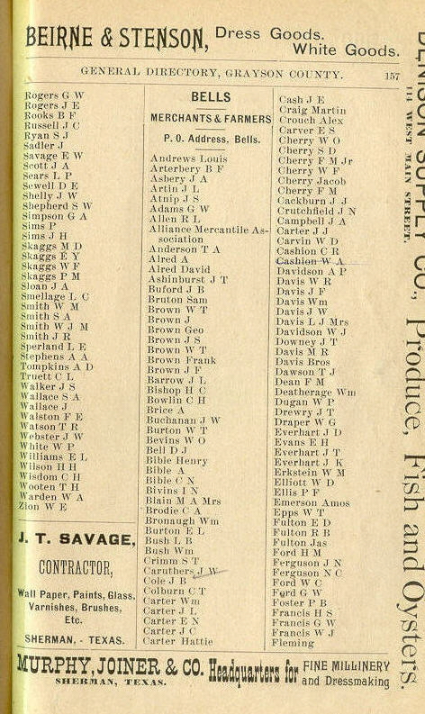 Bevins, Bell, Bible, Bivins, Blain, Brodie, Bronaugh, Burton,