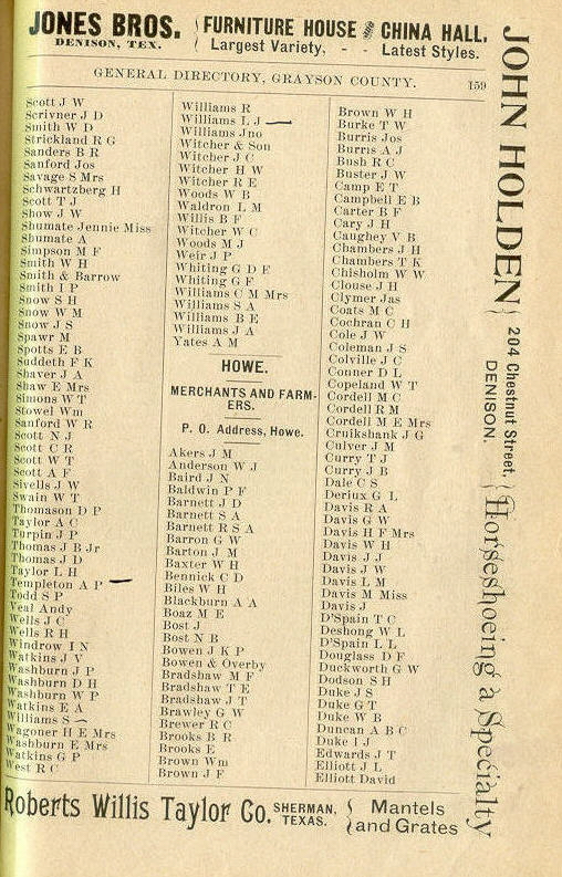 Simpson, Snow, Spawr, Spotts, Suddeth, Shaver, Shaw, Simons,