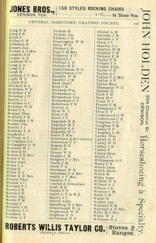 Wilhoit, Wilson, Wooton, Webb, Waldo, Walker, Walthall, Wells,