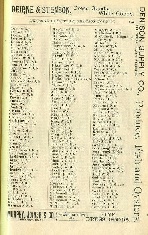 Henry, Hodges, Holliday, Hall, Hodges, Humphrey, Hale, Harman,