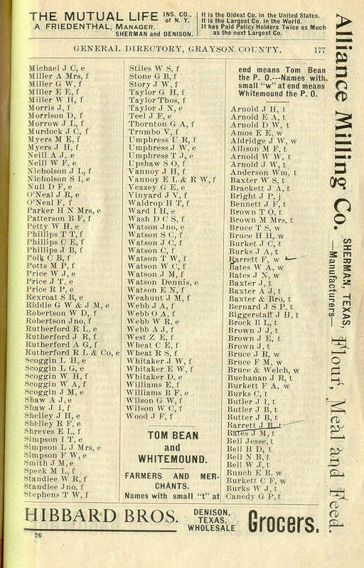 Tell, Thornton, Trumbo, Umphress, Upshaw, Vannoy, Veazey,