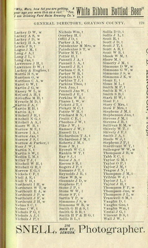 Shumate, Stephens, Stone, Sartin, Simmons, Smith, Sollis,