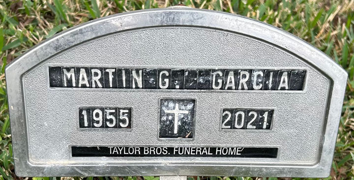 Martin G. Garcia, 66, of Markham passed away November 26, 2021. He was born June 6, 1955 in Bay City to the late Pete Garcia and Maria Garcia. Martin was employed by STP for many years. He loved spending time with his family, especially his grandchildren. He wore his heart on his sleeve and always gave a helping hand when he could. Martin loved the Lord with all his heart and shared that love with everyone. In addition to his parents, he was preceded in death by his daughter Crystal Marie Garcia and sister Noemi Garcia. Survivors include his wife Toni Garcia; daughter Casey Ellen Lopez; son Martin Ellis Garcia; sisters Mary Hernandez, Matiana Perez and Lorenza Brewer; brothers Julian Garcia, Pete Garcia and David Garcia and grandchildren Alex Johnson, Jordan Johnson, Alayja Jo Lopez, Aaliyah Lopez, Alyssa Lopez and Dylan Lopez. Visitation will begin at 1:00 PM Tuesday, November 30, 2021 at Nichols Street Church of Christ. Funeral service will be at 2:00 PM with Terrell Aldridge officiating. Interment will follow at Cedarvale Cemetery. Pallbearers will be Julian Garcia, Pete Garcia, Martin Garcia, Justin Mangum and Martin Ellis Garcia. Pallbearers are James Yates and David Garcia. Taylor Bros. Funeral Home Photo courtesy of Faye Cunningham