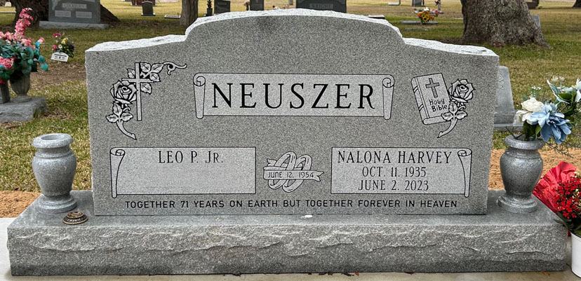 Nalona Neuszer, age 87, of Blessing, Texas went to be with her Lord and Savior on Friday, June 2, 2023. Her deepest passion in life was studying and teaching the Bible in a deeper and more meaningful way. Her desire was for everyone she knew to know the Lord. On October 11, 1935, Nalona was born to Freeman and Francis Harvey of Palacios, Texas. At the age of 17, on a blind date, she met a special Aggie, named Leo Neuszer. Soon after graduating from Palacios High School in 1954, Nalona and Leo married on June 12. They were together for almost 70 years. Leo enlisted in the United States Air Force which took them out of state to live and start their family. After serving 3 years of active duty, Nalona and Leo moved back to Texas and settled in Markham. Their family grew; they had 4 daughters and 1 son. Because of Nalona and Leo’s growing family, in the early 1970s, they built a home and moved to Bay City. Nalona loved family. She loved family gatherings and was very skilled at organizing dinners and parties whether it was for her 83-year-old grandmother’s birthday or an Easter Egg Hunt for the little ones. Also, in the early 70s, Nalona discovered her talent for making and creating ceramic pieces. She painted beautiful woodland animals, Smiley figurines with their large head and big, bright eyes and smile, and various Christmas scenes. One of Leo’s favorites was a big, gray Brahman bull. Nalona named it Matlock after the bull Leo had at the ranch. The whole Neuszer family was excited at Christmas when they saw the big boxes under the tree because they knew what the contents contained: her beautiful ceramics! During her children’s early years, Nalona worked hard as a homemaker. After the kids got older, she worked outside the home in the medical field. Both Nalona and Leo retired in the late 1990s. At the turn of the century, they purchased an RV and did some traveling throughout the United States, but by far, her favorite vacation was abroad. For many, many years, Nalona dreamed of going to Israel. She wanted to walk in the footsteps of Jesus, see the things He saw and be baptized in the same river He was. In 2007, that dream came true. Nalona and Leo traveled to the Holy Land, took a boat ride on the Sea of Galilee, were baptized in the Jordan River, walked on the Mount of Olives and went inside the empty tomb! They were also able to take a side trip to Petra, Jordan where she got to meet Queen Rania! All throughout Nalona and Leo’s marriage, they were active in church. Nalona taught Sunday School, Bible School and Bible Studies. Her main focus in teaching was to tell about God’s unyielding love to the world and the gift of His son, Jesus Christ. Friday morning around 3:00 a.m., Nalona entered through the gates of Heaven. We know there were many friends and loved ones waiting to greet her. She was preceded in death by her parents, Freeman and Frances Snider Harvey, her infant baby daughter, Connie Lynette Neuszer, a brother, Lonnie Harvey, sisters-in-law, Margie Ackerman, Rosemary Harvey, Dorette Harvey, and a brother-in-law, Bob Ackerman. Nalona will be greatly missed by all those who knew her. She touched our lives in so many ways. She is survived by her loving husband, Leo P. Neuszer, Jr. of Blessing, Texas, daughter, Carol Neuszer of League City, Texas, daughter, Lori Ann Collins (James) of Bay City, Texas, daughter, Lisa Adams of Cypress, Texas, son, Phil Neuszer (Marsha Butler) of Bay City, Texas. Nalona had 5 grandchildren: Greg Collins (Toi) of Friendswood, Texas, Kimberly Melendez (Matt) of Richmond, Texas, Cammile Brannan (Rad) of Cypress, Texas, Ashley Adams of Cypress, Texas and Mark Collins of Bay City, Texas. Her 6 great-grandchildren are: Jackson, Micah and Tessa Collins of Friendswood, Texas, Collins Melendez of Richmond, Texas, Harper and Baby Boy Brannan of Cypress, Texas who is due in October. Nalona also leaves behind 3 brothers and 2 sisters-in-law: Gaylon Harvey (and friend, Connie Huitt) of Blessing, Texas, Larry Harvey of Alvin, Texas, Donnie Harvey (Mary Jo) of Ashby, Texas and Wanda Harvey Johnson (Al) of Palacios, Texas. Funeral services will be held on Wednesday, June 7, 2023 at the Palacios Funeral Home located at 701 1st Street. Visitation will be from 1:00 p.m. – 2:00 p.m. with the service beginning at 2:00 p.m. The graveside service and burial will follow at Hawley Cemetery. Pallbearers and Honorary Pallbearers will be: Greg Collins, Mark Collins, Matt Melendez, Rad Brannan, Tim Harvey, Toby Harvey, Tyson Harvey, Michael Harvey, David Harvey, Chris Harvey, Kevin Harvey, Dennis Wesselman and Michael Steffek. The Neuszer family would like to extend a special thank you to Angels Hospice Care of Bay City, especially Cathy Dunn, June Moore, Terevea Bonner Williams, and Bertha Fields. Your knowledge, care and support for our whole family is greatly appreciated. Her children rise up and bless her; her husband also, and he praises her, saying: “Many daughters have done nobly, But you excel them all.” ~ Proverbs 31:28-29 NASB Taylor Bros. Funeral Home