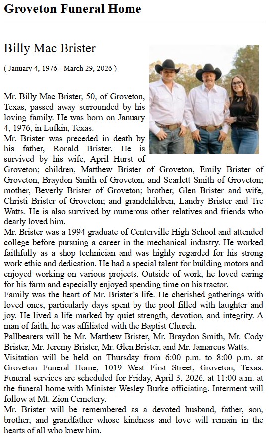 | CURTIS | Michael Louis | Trinity County News Standard | 4/15/2021 |