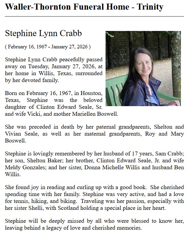 | CRUMPTON | Billie Marie | The Groveton News | 2/25/1999 |