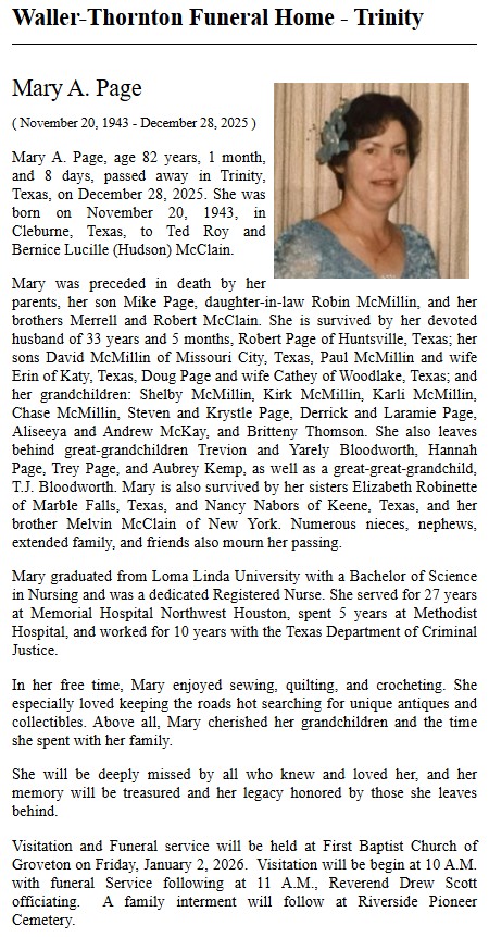 | PARISH | Ada Belle Lathrop | Trinity County News Standard | 2/7/2019 | |