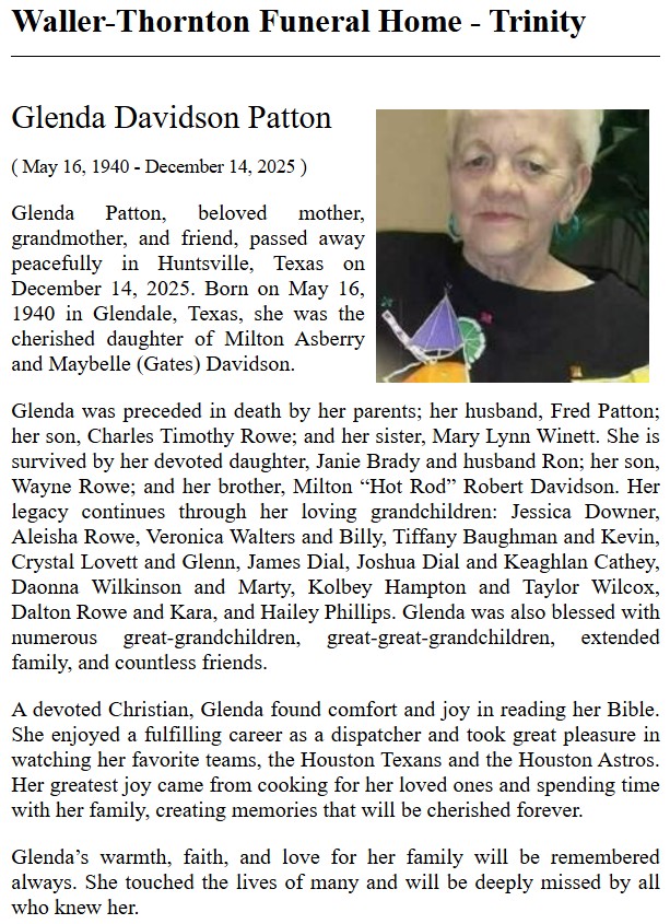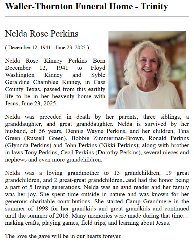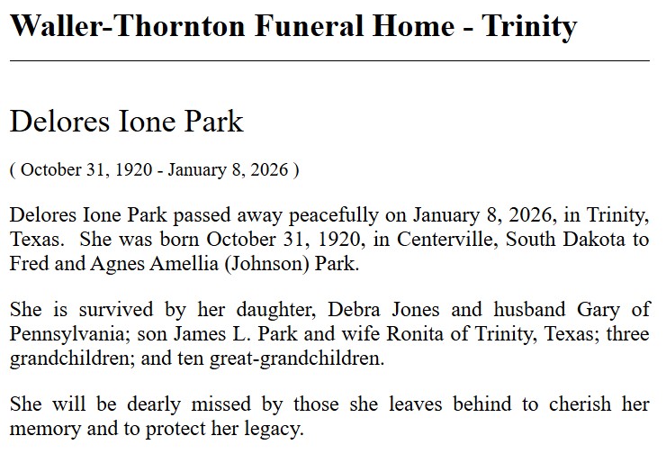 | PARKER | Dorothy Jean Fransaw | Trinity County News Standard | 8/26/2021 | |