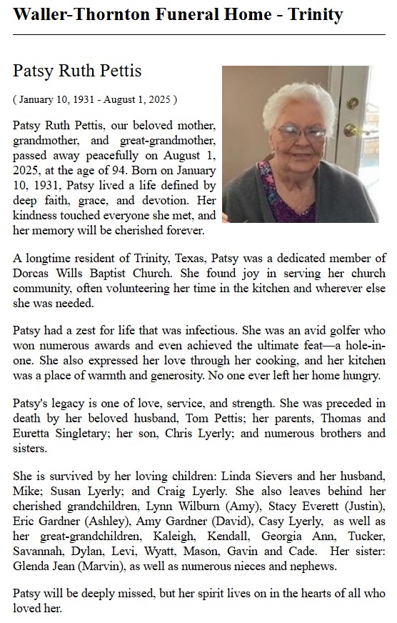 | PARCHMAN | Myrtle | The Groveton News | 5/1/1975 | |