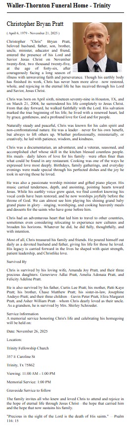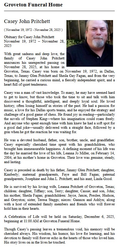 | PARKER | Brian Scott | Trinity County News Standard | 5/11/2023 | |