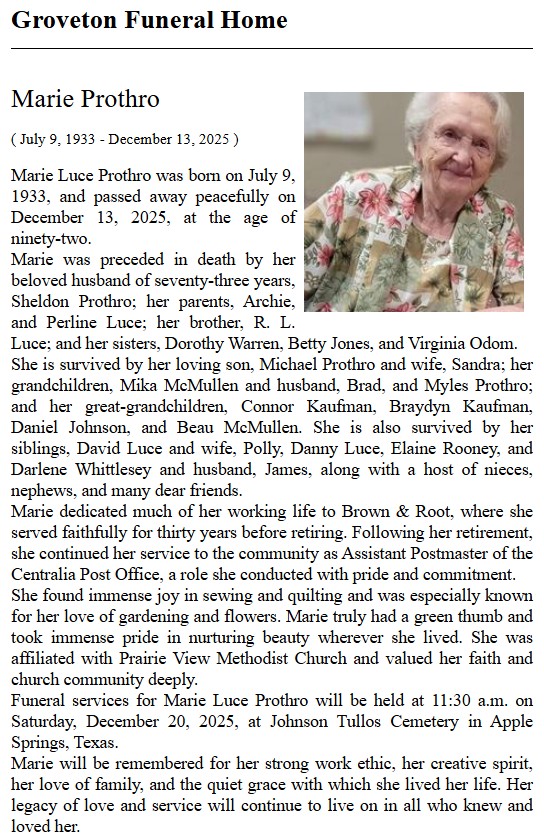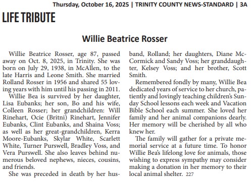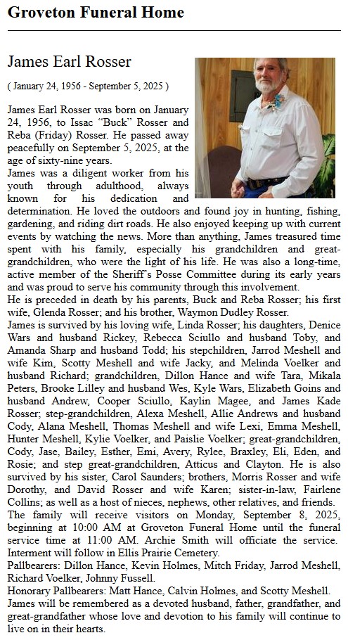 | ROSSER | Vada | The Groveton News | 10/7/1971 | |