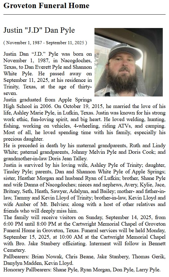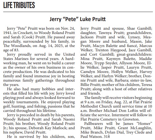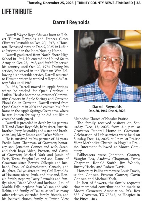| RUNION | Larry Dwain | Trinity County News Standard | 9/3/2020 | |