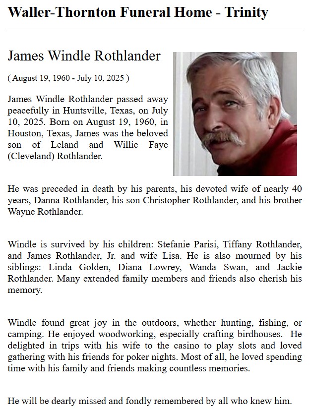 | ROWE | Justin Everitt | Waller Thornton Funeral Home | 8/19/2023 | |