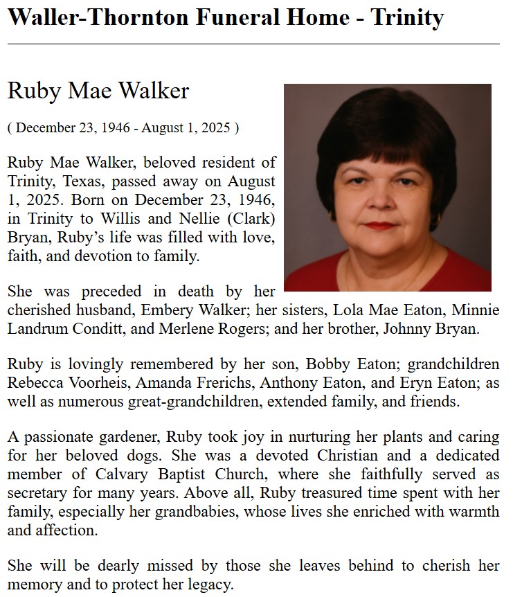 | VARIEUR | Bonnie Glynn Robinson | Trinity County News Standard | 5/26/2022 |