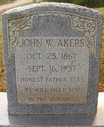 >From Clyde Maxey 1/09/03 to Kasia Johnson> Velta was an Akers and James was her great grandfather. He supposedly froze to death while going fron one son's house to another. Another story is that he was coming from church and was found in a kneeling position with his bible in his hand, either could be true due to the date of his death. We have a considerable amount of data on Brooks, Velta's grandfather, but not a lot before that. Earl Aker's site is probably the best online site. It seems that William Akers lived in England and that is where the line you are on comes from down through Wm 2nd and Wm 3rd and then to Blackburn etc. I have some books compiled by various people about the Akers families and there so many mistakes in them that I am afraid to quote any of them. I suspect you are looking at Nancy's family because she married Lloyd Thompson. Velta's mother and father were cousins, but I have forgotten exactly how. Now I remember they both descended through Adam Akers. I will have to dig out my book to find out the exact line. Someday I am going to put all of this data on the computer if someday ever gets here. Another note from Ole Clyde, 1/15/03, to the Floyd Co., VA Newslist Subj: [VAFLOYD] Little Jim Akers I thought I would muddy the waters a little as far as James "little jim" Akers is concerned. The following is from a paper by Lucy Hudson Akers, a daughter-in-law of Brooks. She says that Brooks told her this as he would sit in his chair and she would be cleaning up the house. She says that Jonathan was married to Rebecca Kunode who was raised in England. They were the parents of James who was one of their six children. James married Sarah Reed in 1840. They had eight children, six boys and two girls. George, Jonathan, Ed, Brooks, Psaulters and William. The girls were Elizabeth and Nancy. George and Jonathan fought in the civil war. George was killed at the battle of Bull Run. Jonathan was wounded, being shot through the mouth and about the face. (note: family lore has it that Jonathan had deserted and knew that the soldiers were seeking him, so he dressed in his mother's clothes and was sitting at the spinning wheel when they came. Apparently they didn't check very close) Brooks' grandfather died during the first year of the war Becky died at the age of 95 during the second year from nosebleed. James was the first schoolteacher in these parts and built the first schoolhouse in the neighborhood. It was built from logs and it was just one room. He taught for fifty cents per month for each child often taking his pay in foodstuff. He also did public writing, such as deeds and such documents. In 1868 he helped build the log cabin for his son Jonathan which later became the home of his son Brooks. It was in this house that Sarah/Sally died in early Eightys. James lived alone for a while, later marrying Nancy Leffew who was the spinster aunt of Brooks' wife Louise. James had been used to being a free spirit and couldn't adapt himself to the peculiar ways of the spinster woman. They only lived together for a short time and then he lived among his children. He was found dead one wintery day near his son Ed's house. (Note: some say he froze to death) He was on his knees as if he were praying. The letter stops here with the word "continued" but no one has seen any more writing. I don't know if she stopped there or if she wrote more and it was lost. I wish I could have received this letter before she passed away. The Notes are mine. I have a James Akers 76 wid marrying a Nancy Lefew 60 wid on August 10, 1891. Parents Jonathan and Rebecca. jist ole clyde |