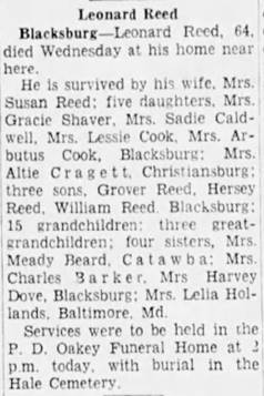 The Roanoke Times, Roanoke, Virginia · Sunday, July 03, 1932 1932 Burial: Hickman Cemetery, Radford City, VA.