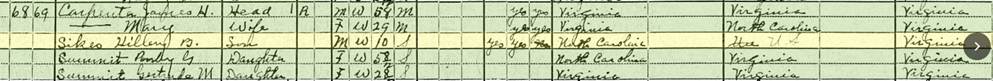 Mary A. 28 yo wife, b. VA, parents b. NC, m. 10y, 3 children with 3