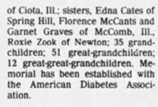 great-granddaughter, Emily Kidd, Muncie, Ind.; brother, Roscoe Duncan, Riner;