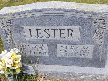 Parents: James T. Jr & Ann Eliza (Beldon) Lester. [Lester_Ann_JamesT_Jr] 1846 Birth: 7-8-1846 Floyd Co., VA. 1870 Residence: Floyd Co., VA with husband Jonathan Akers. 1880 Residence: Montgomery Co., VA with husband Jonathan Akers. 1890, 1900 Residence: Floyd Co., VA with husband Jonathan Akers. 1910, 1920 Residence: Giles Co., VA with husband Jonathan Akers. 1923 Death: 3-19-1923 Giles Co., VA. Harriet ?. Akers, 77 yo married w/f, b. July 1846 Floyd Co., VA. Spouse: Jonathan Akers. Jim Lester, b. Floyd Co., VA. Eliza Bilding, b. England. Informant: blank. COD: bronco pneumonia. Burial: blank. (doesnt look like an E.) 1923 Burial: Fletchers Cemetery, Giles