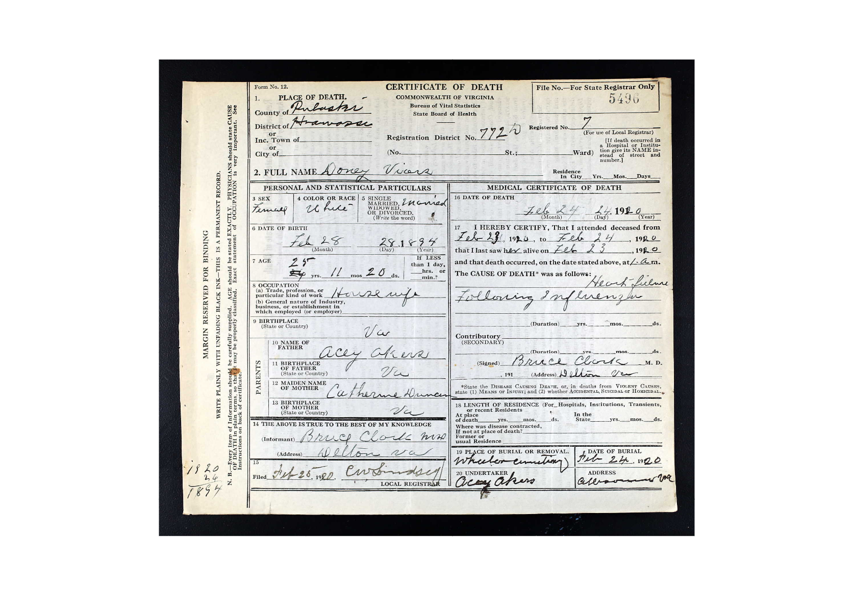in Carthage, Floyd County, VA 10-5-1907. Lacy's parents were William C.