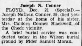 Floyd Co., VA, Simpsons PO, H373: …… Conner, Aaron M. 47 yo w/m farmer, b. Floyd,