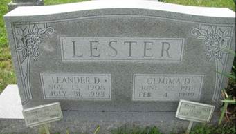 Gemina Vivia Duncan m. Leander D. Lester 1933 Floyd Co., VA. Leander D. Lester, s/o Colonel Alfred & Roena Caroline