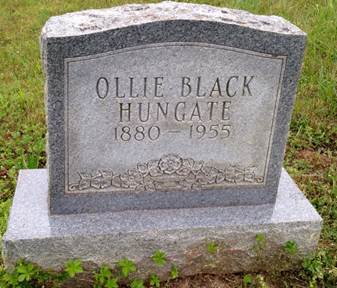 completed grade 6, rents in Floyd Co., VA in 1935. 1955 Death of Ollie Black Hungate: 12-1-1955 Little River, Floyd Co., VA. Ollie Black Hungate, 75 yo widowed w/f housekeeper, b. Oct 25, 1880 VA. Father James H. Black. Mother Sarah Bower. Spouse John T. Hungate. Informant Phillip H. Black of Rt 4, Floyd, VA. COD arteriosclerosis. Other malnutrition. Burial Pine Creek Church Cem., Floyd, VA. 1955 Burial of Ollie Black Hungate: Pine Creek Primitive Baptist Church Cemetery, Floyd Co., VA.