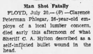 Death of Charles Preston Phlegar: 5-14-1915 Shooting Creek. [Death Cert]