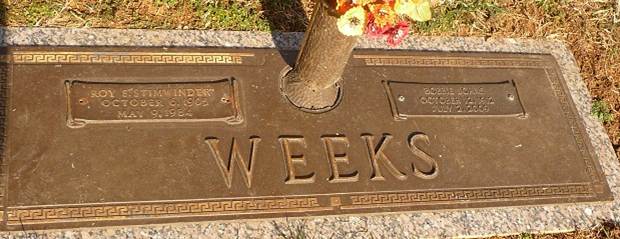 Parents: Stafford Thomas & Osha Allis B. (Weeks) Weeks. 1905 Birth: 10-6-1905 VA. 1910: 1920 Residence: Roanoke City, VA with parents. Marriage #1: Bobbie Johns. 1984 Death: 5-9-1984 of Roanoke City, VA. 1984 Burial: Evergreen Burial Park, Roanoke City, VA.