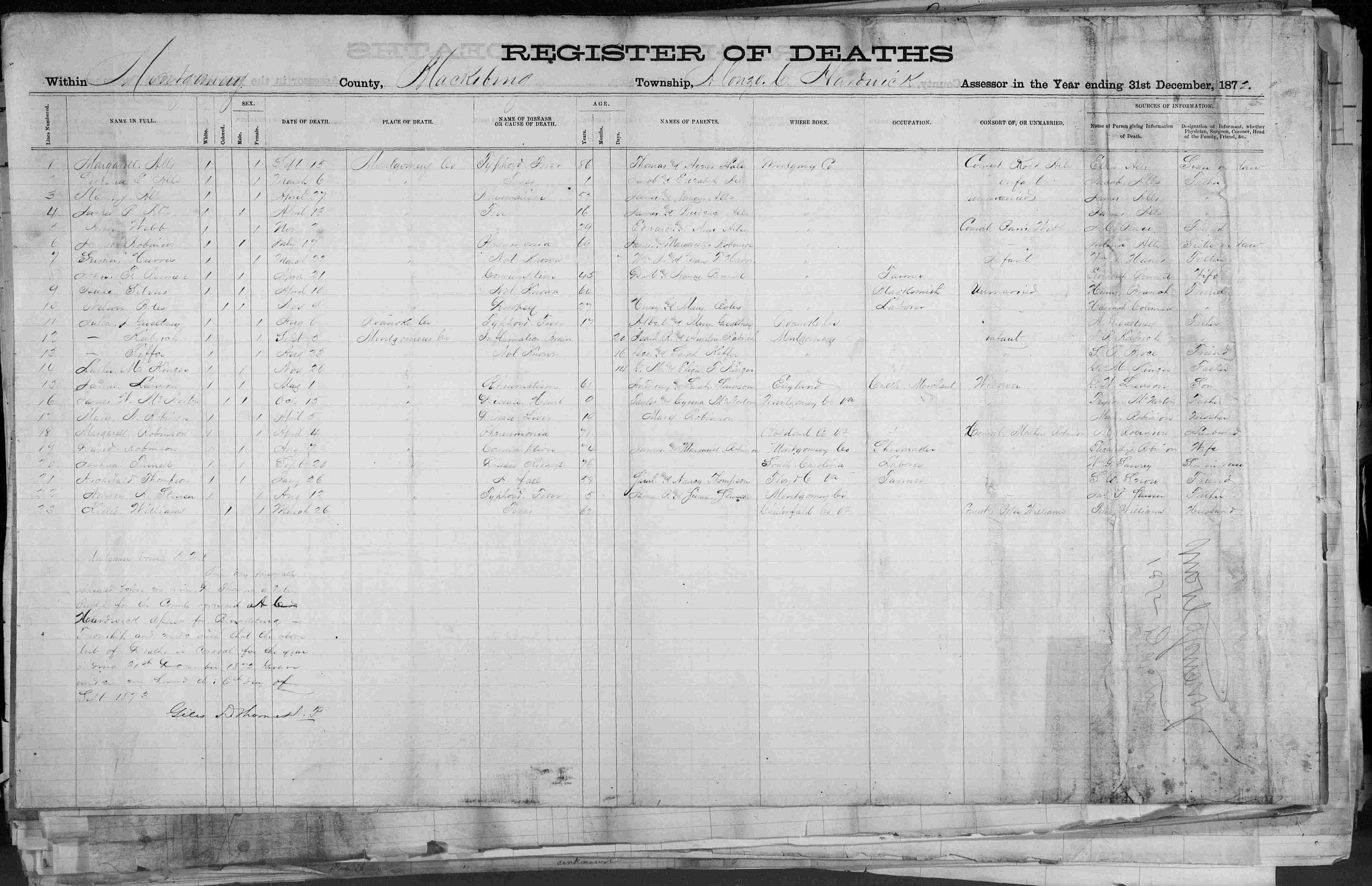 Montgomery & Mary (Oliver) Croy. [Death Cert]