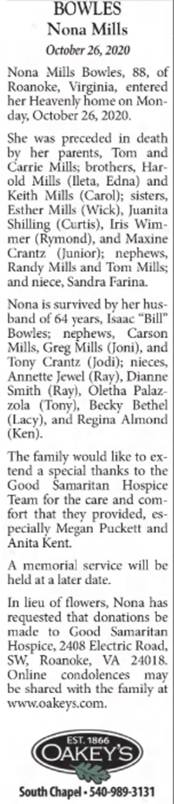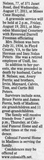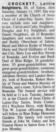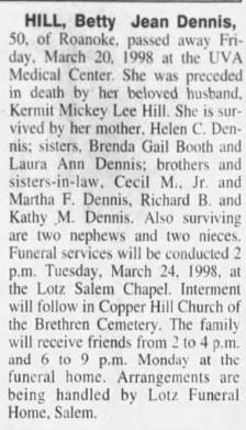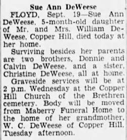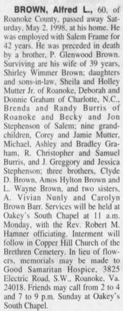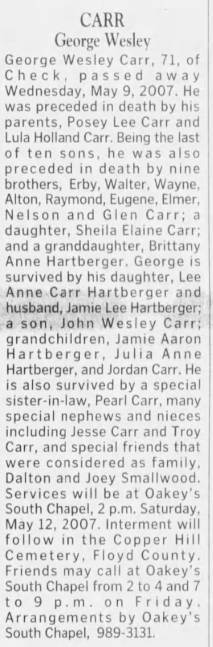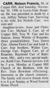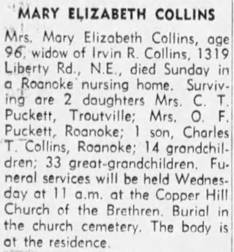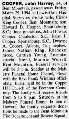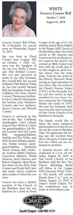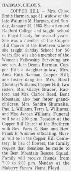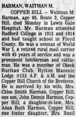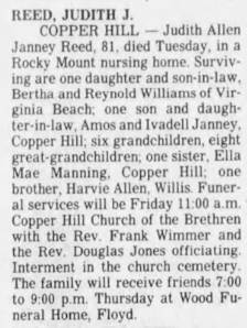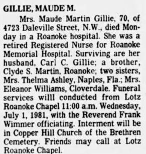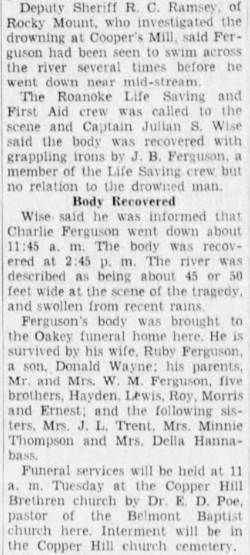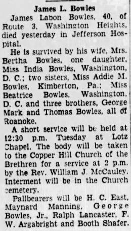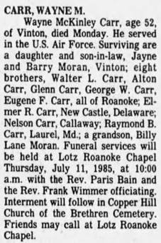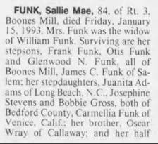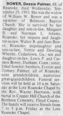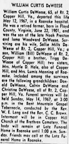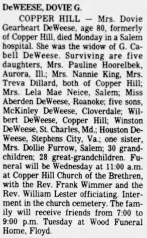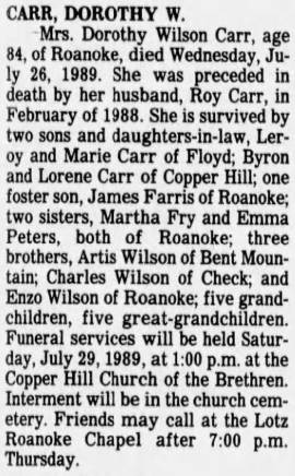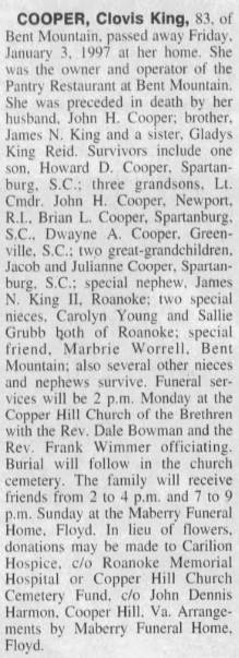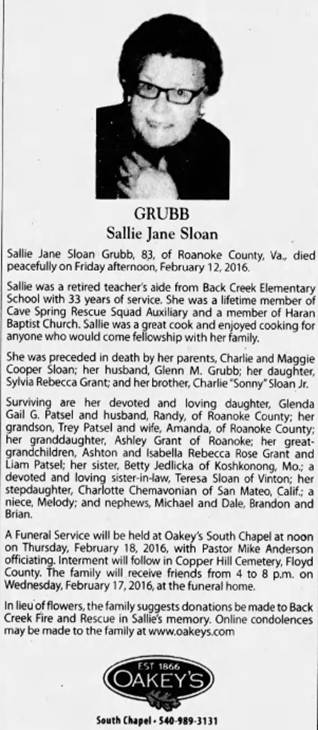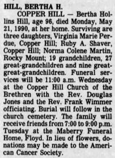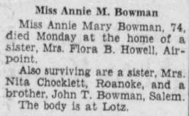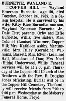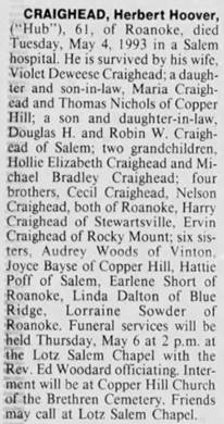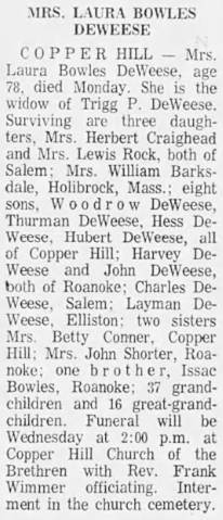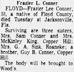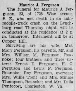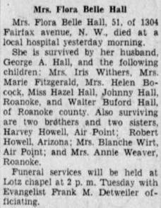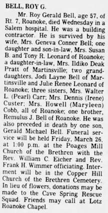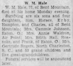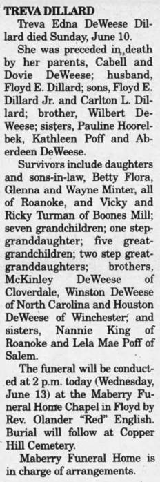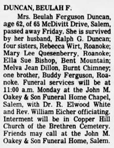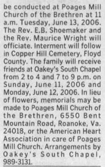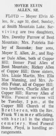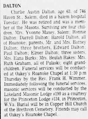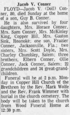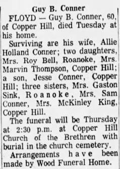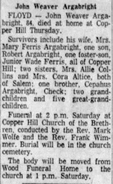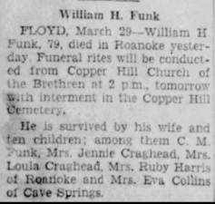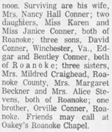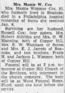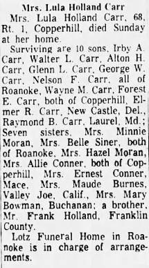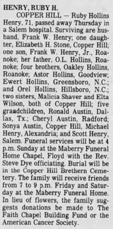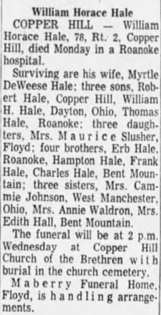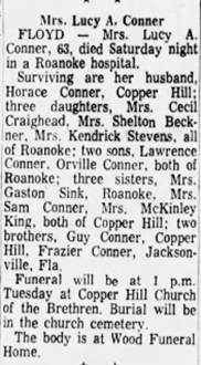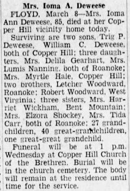 1936 Roanoke, div. 1951 & remarried 1952 Floyd, div. 1962 Roanoke, Arietta