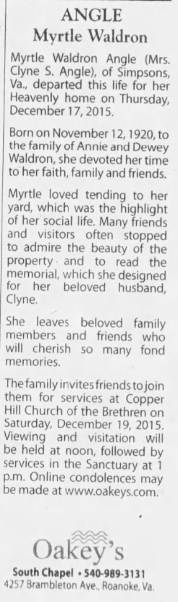 Myrtle Marie Waldron, d/o Dewey Cleveland & Annie (Hale) Waldron. [no