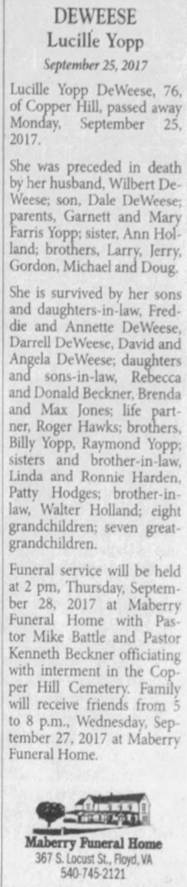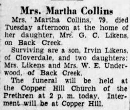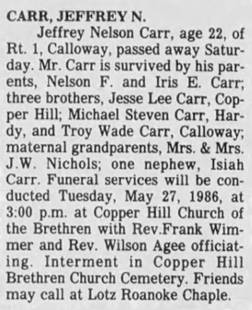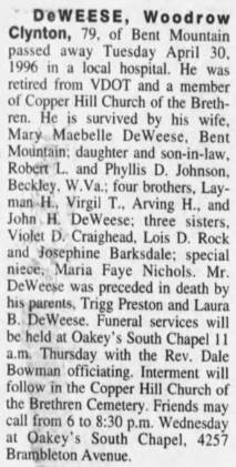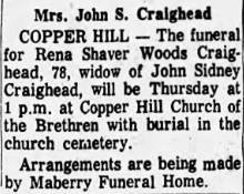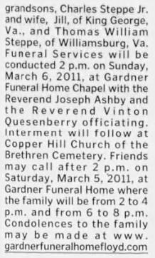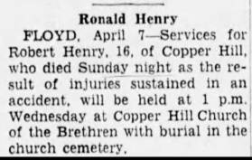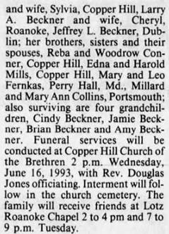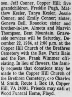 Copper Hill Church of the Brethren. Interment will follow at Copper Hill