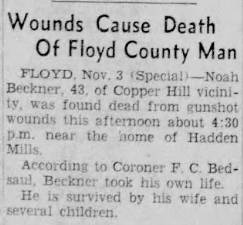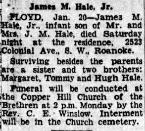 Floyd, s/o George Washington & Cora Belle (Reynolds) Hundley of Patrick Co., VA. [Death Cert] [no file] He