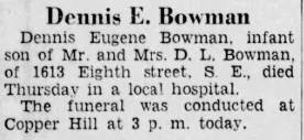 Benjamin s/o John & Sarah (Naff) Bowman of Franklin Co., VA. [Death Cert] [no