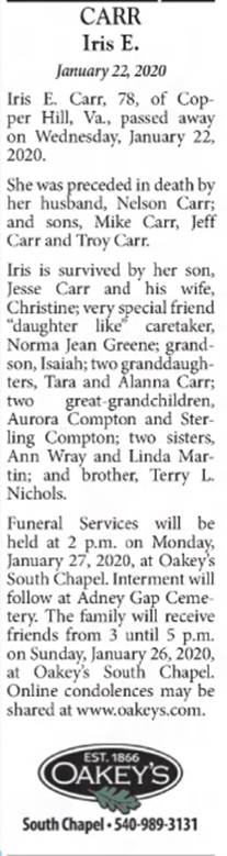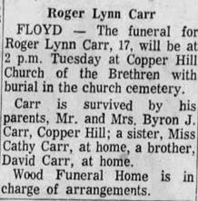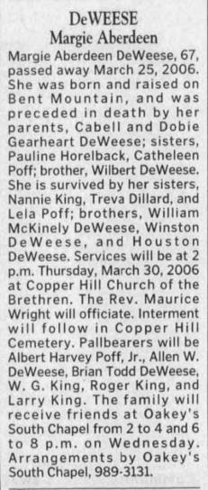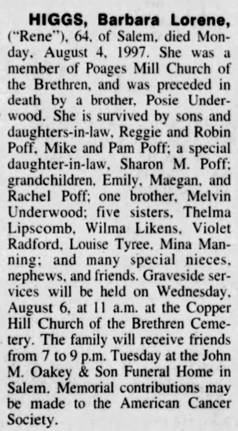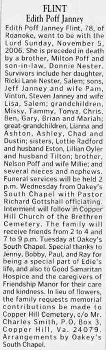 m. 1944 Floyd, Cora Manda Poff, d/o William Riley & Virginia Ann (Carr)