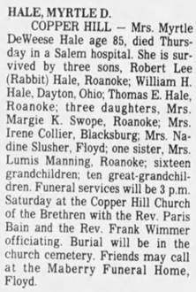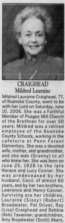 Murdock Muncy, 1916-1996, b. Roanoke, d/o Sidney & Delia Blaine